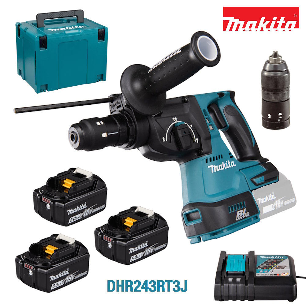 Schon auf der Titelseite flasht uns Makita mit einem fetten 18 Volt Akku-Angebot. Der Makita Akku-Kombihammer 18V SDS-PLUS DHR243 in der Ausführung RT3J, also inklusive: